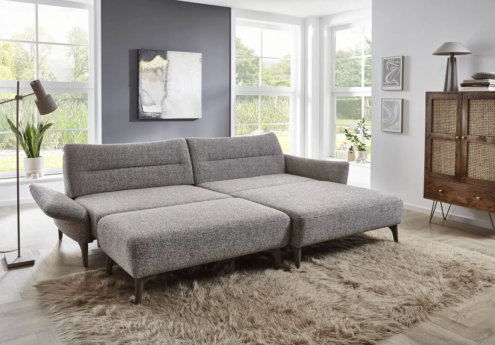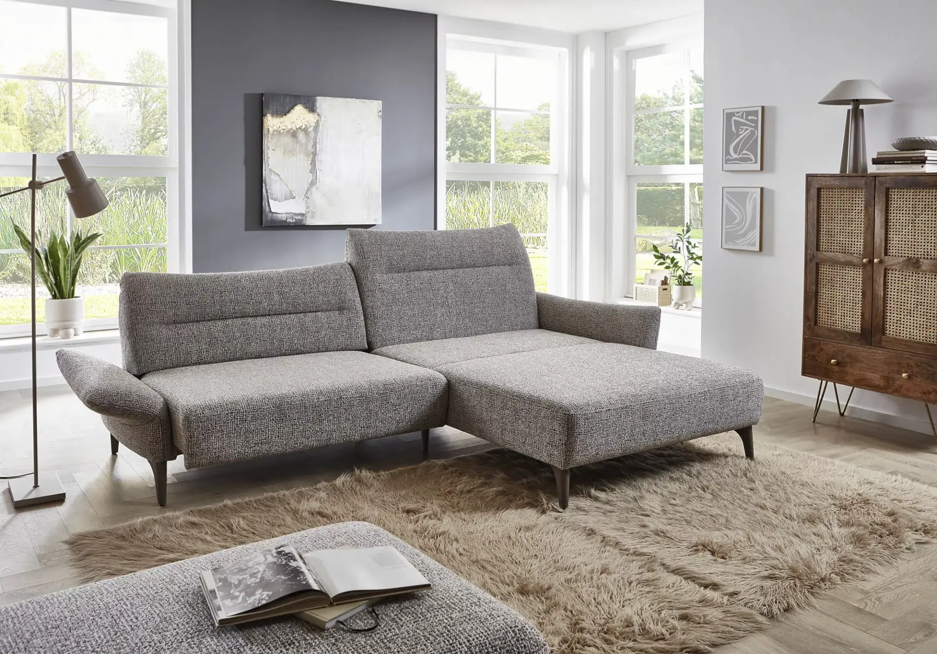 Modell PAULA präsentiert sich im kubisch modernen Look. Die rücken lassen sich via Sensor in der Höhe motorisch verstellen und wird somit zum bequemen Hochlehner. Kombiniert mit einem extrabreiten Longchair wirkt das Sofa elegant und komfortabel und man möchte sich fallen lassen. Das Sofa wird handwerklich mit Liebe hergestellt und zu 100% made in Germany produziert.