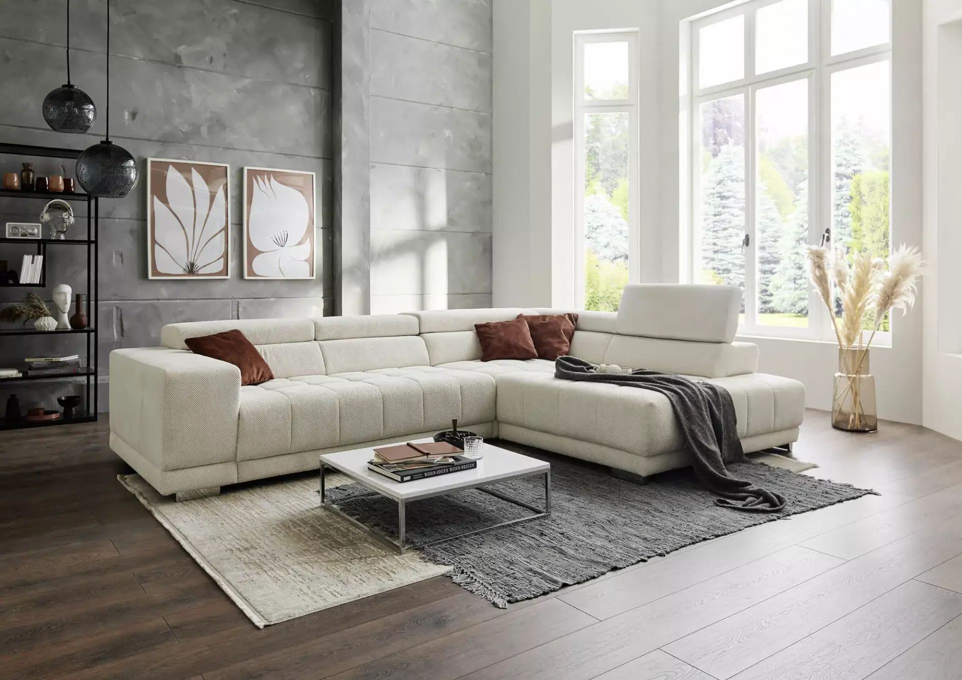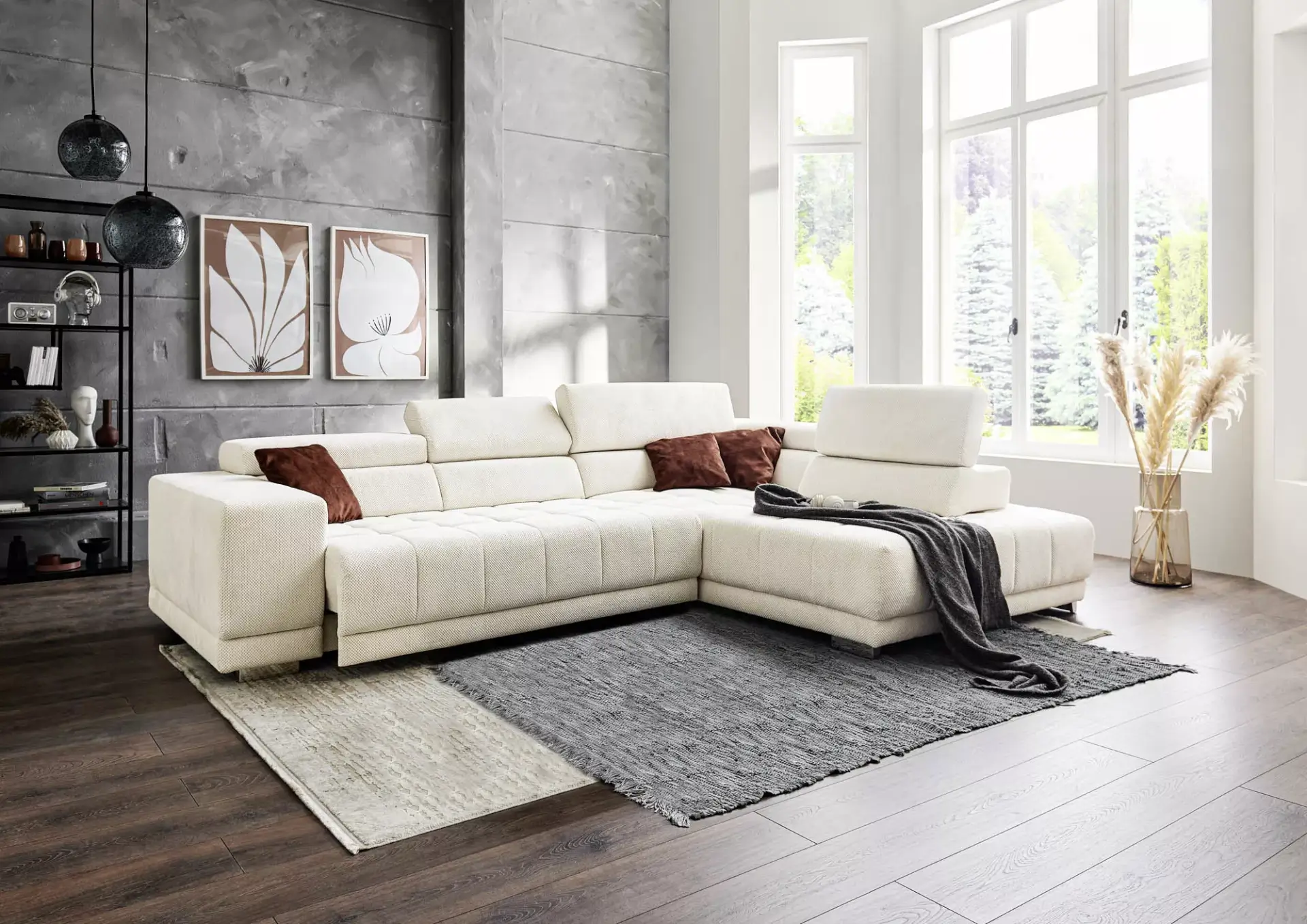 Großzügige, komfortable Wohnlandschaft mit vielen interessanten Funktionen wie Sitztiefenverstellung, Kopfteilverstellung, motorischer Vorziehbank und vieles mehr.