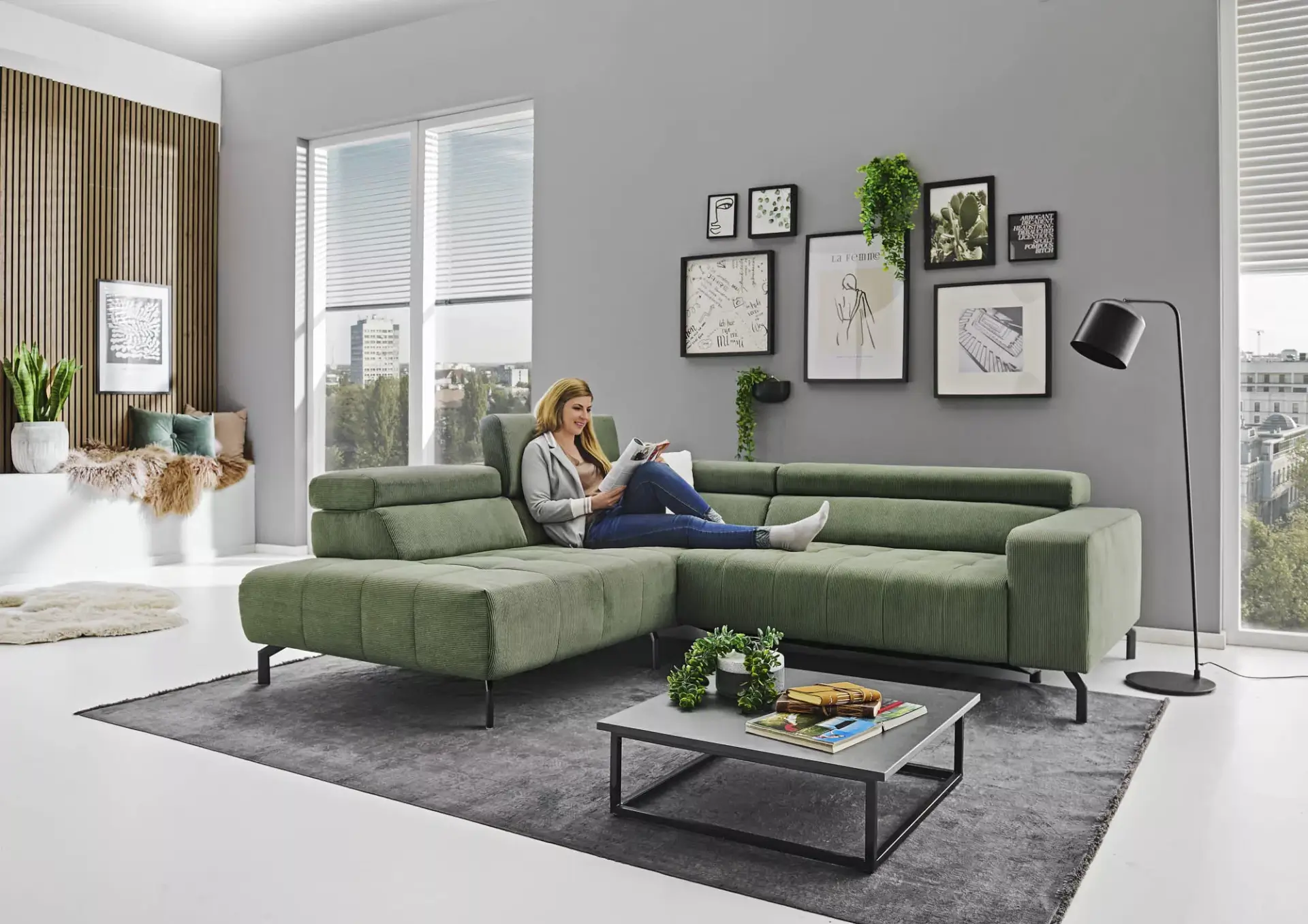 Topmodische Wohnlandschaft mit Kaltschaumpolsterung im Sitz, Kopfpolsterverstellung, zwei Sitzhöhen, zwei Fußausführungen, optional Sitztiefenverstellung und motorische Vorziehbank und vieles mehr.