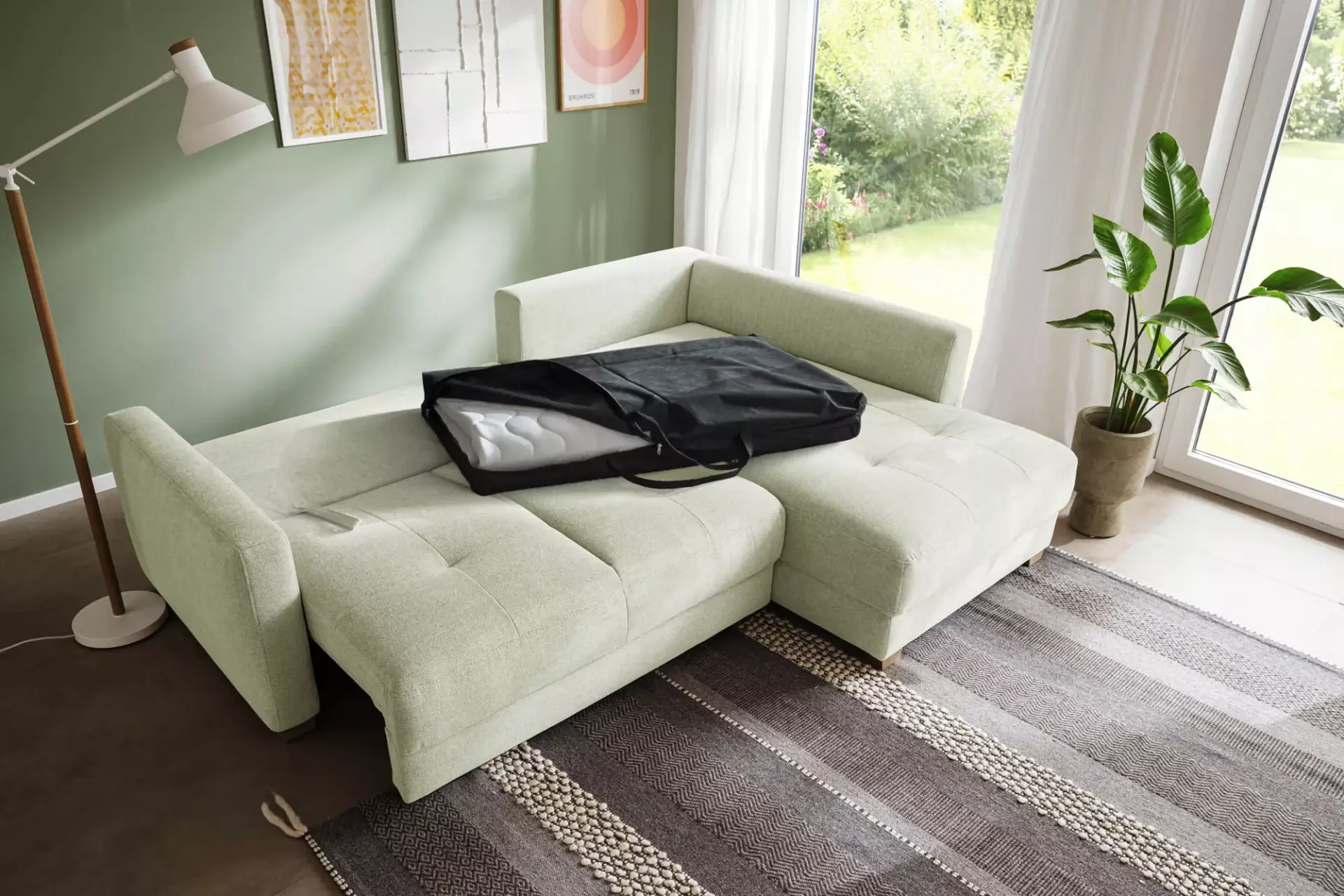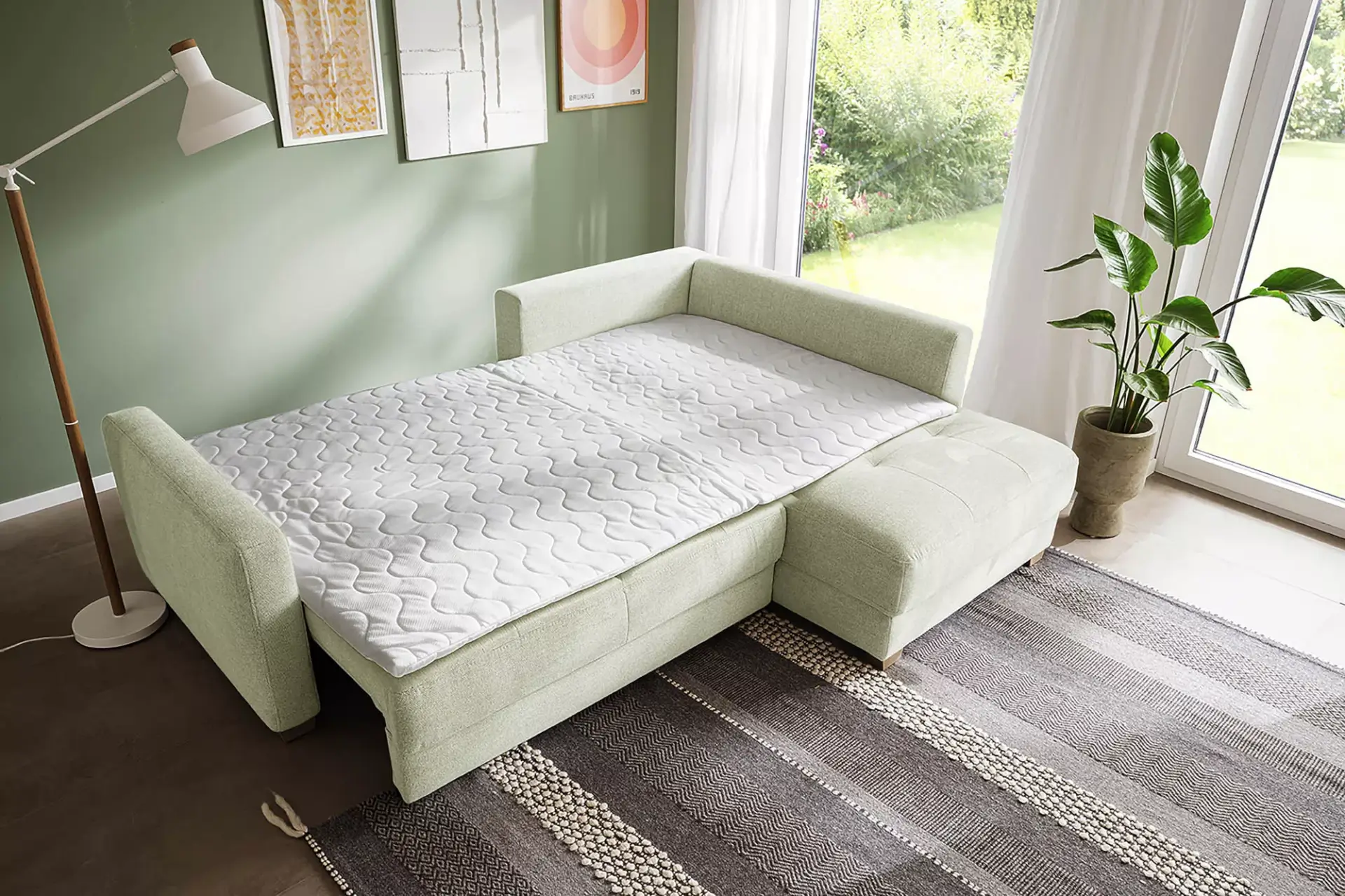 inkl. Bettkasten weiß beschichtet mit Belüftung, inkl. Hygiene-Topper mit Transporttasche, inkl. Aufziehhilfe für Umschlagrücken, einmalig seitenverkehrt montierbar,