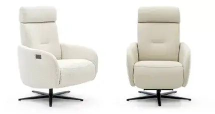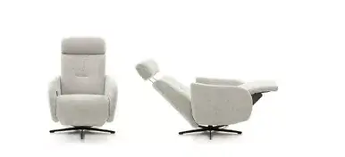 Moderner Relaxsessel in drei Ergonomiegrößen, festgepolstert. Ein legerer Look und stärkere Faltenbildung sind bewusst warentypisch. Verschiedene Armlehnenvarianten, manuelle Bedienung oder motorische Unterstützungen sind in verschiedenen Ausführungen erhältlich. Ebenso interessant ist die 360° Drehung.