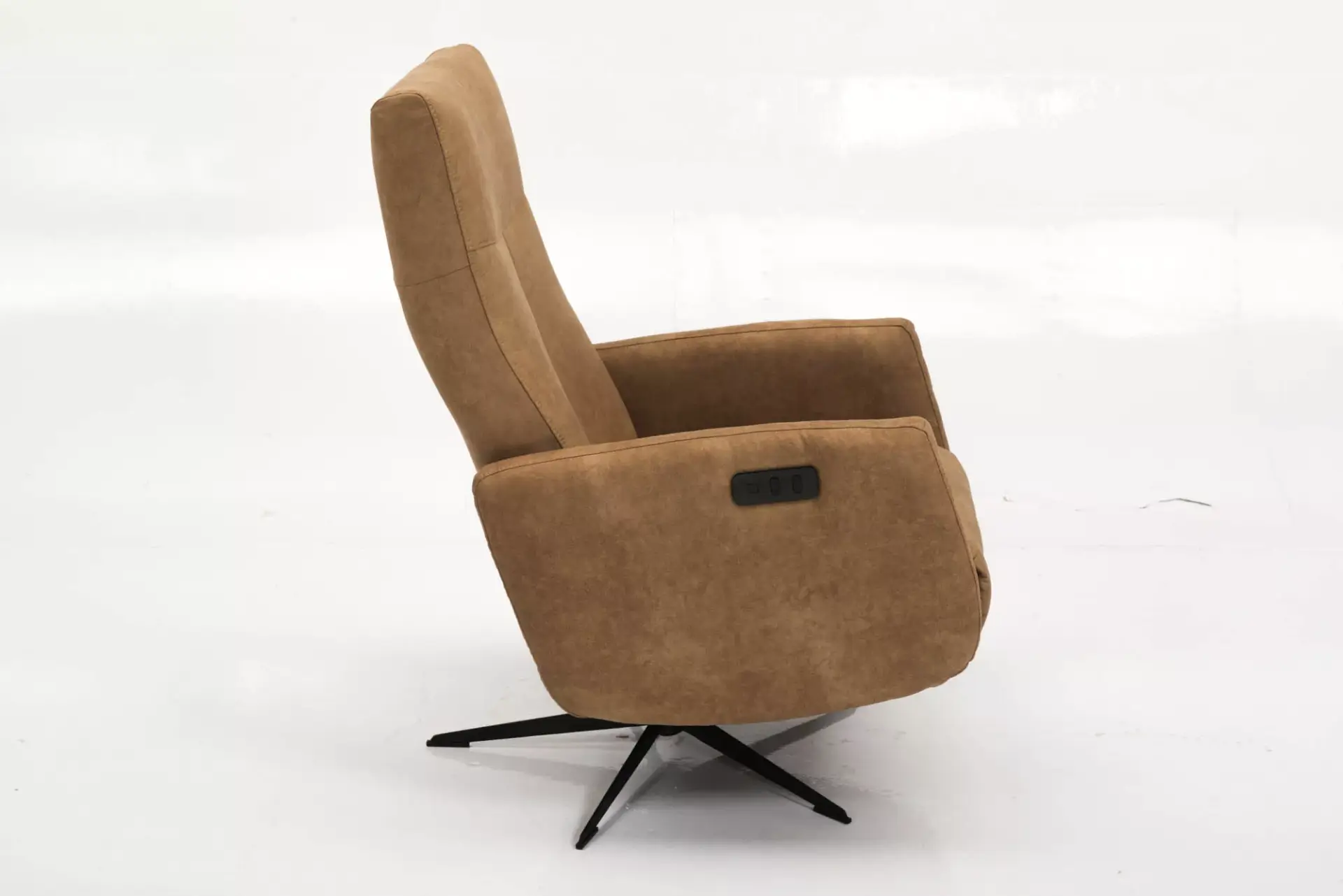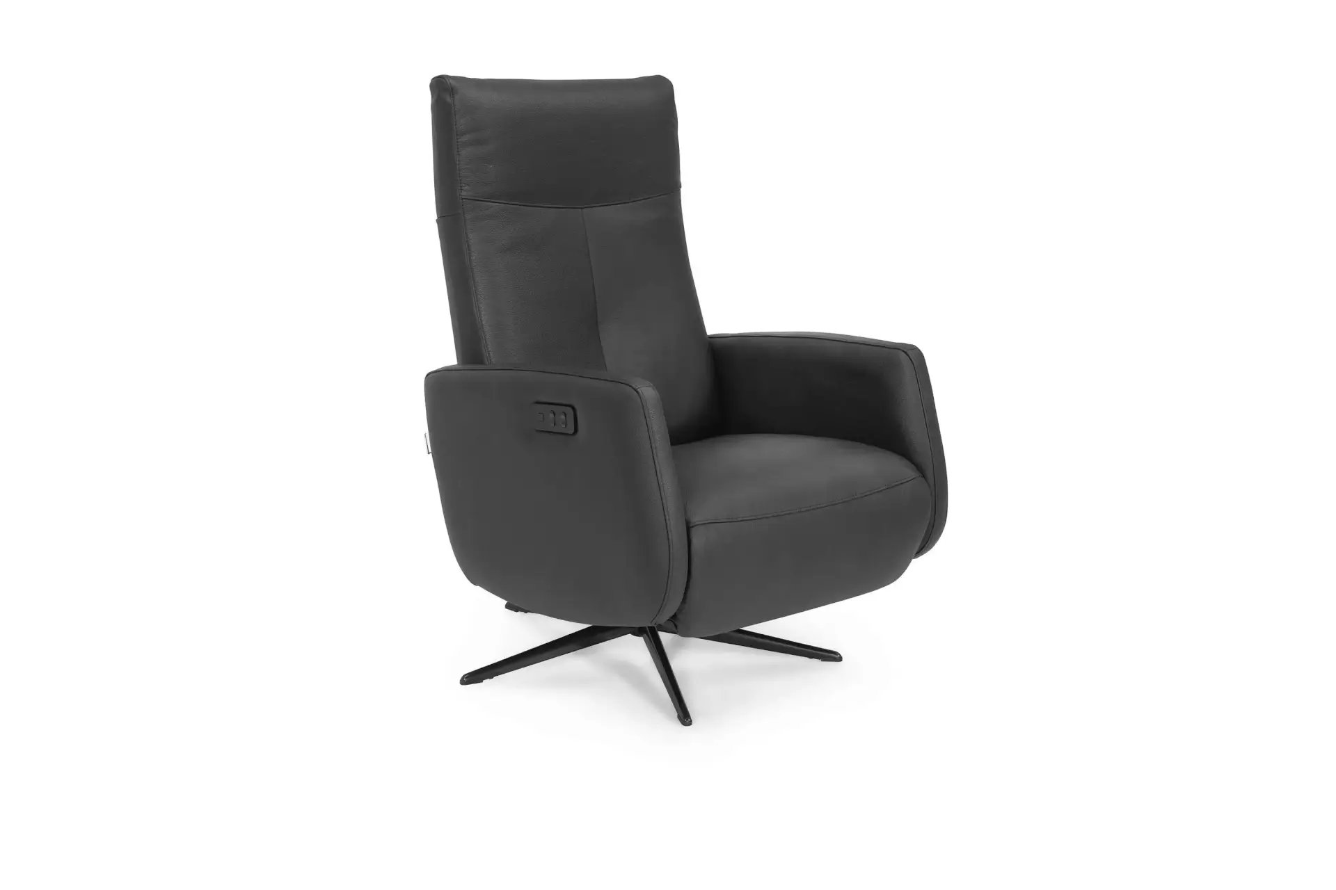 Angesagter Relaxsessel mit manueller Bedienung, 360° drehbar mit verstellbarer Rückenlehne an der Innenseite und Easy-Go Fußstütze. Fixed Kopfteil.