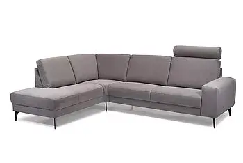 Polstersofa in Leder Soleda, Farbe anthrazit 443, Fuß 201 K schwarz bei 16 cm Höhe. Sitzfläche Sandwich mit Taschenfederkern, Rücken Schaum VP