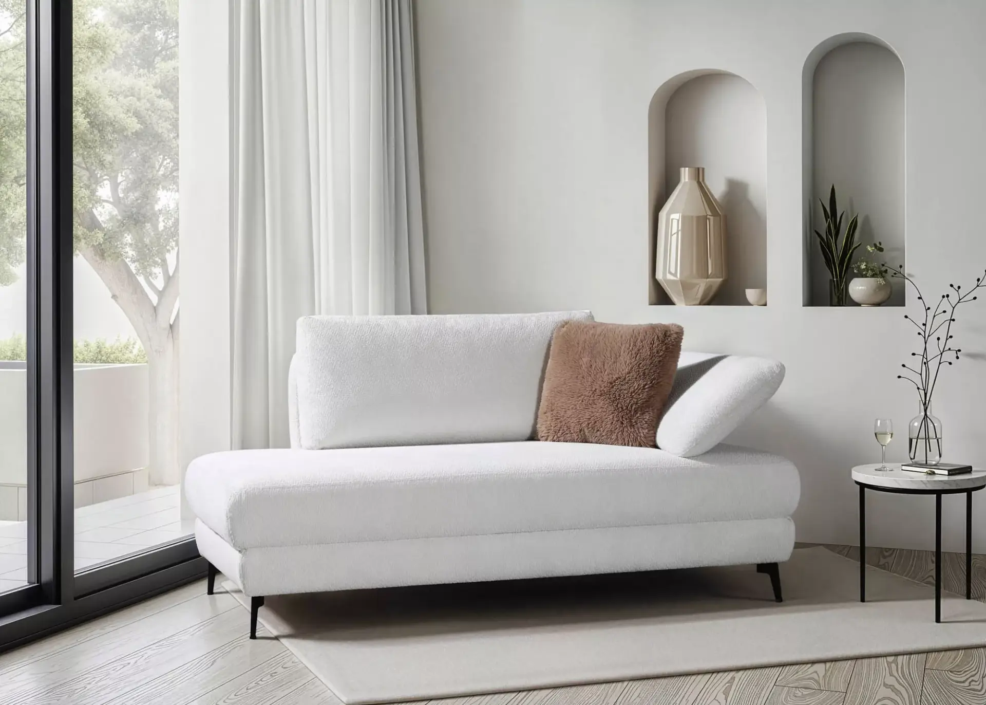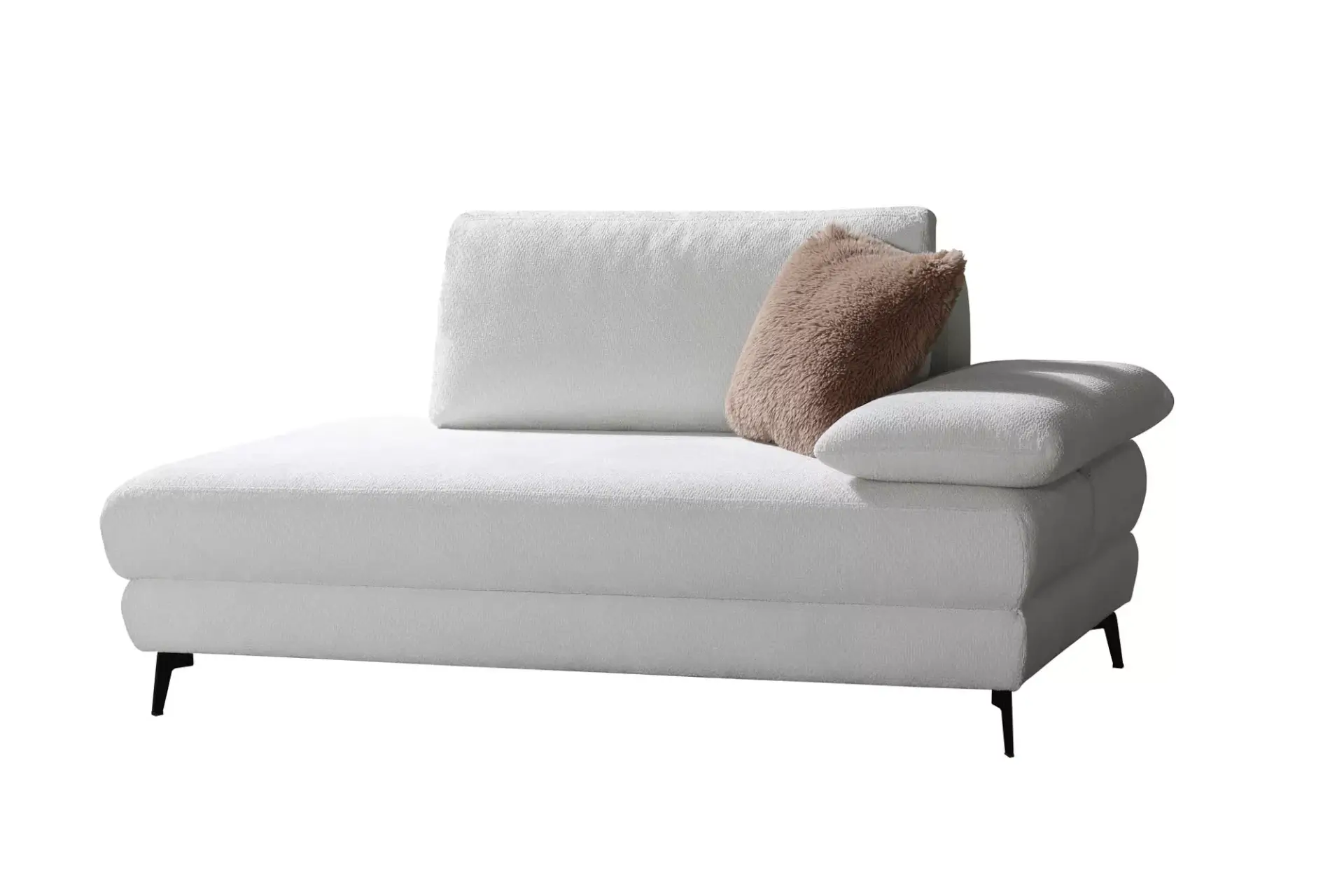 Einzelliege mit Funktionsarmteil mit Rasterbeschlag zur individuellen Verstellung. Armteil links oder rechts wählbar. Liegefläche 90 x 210 cm mit Federkernsitzfläche.