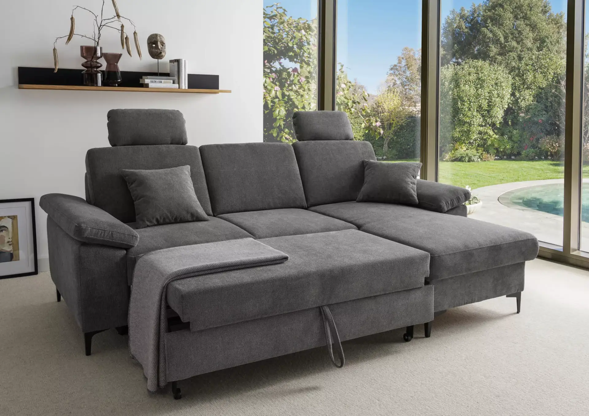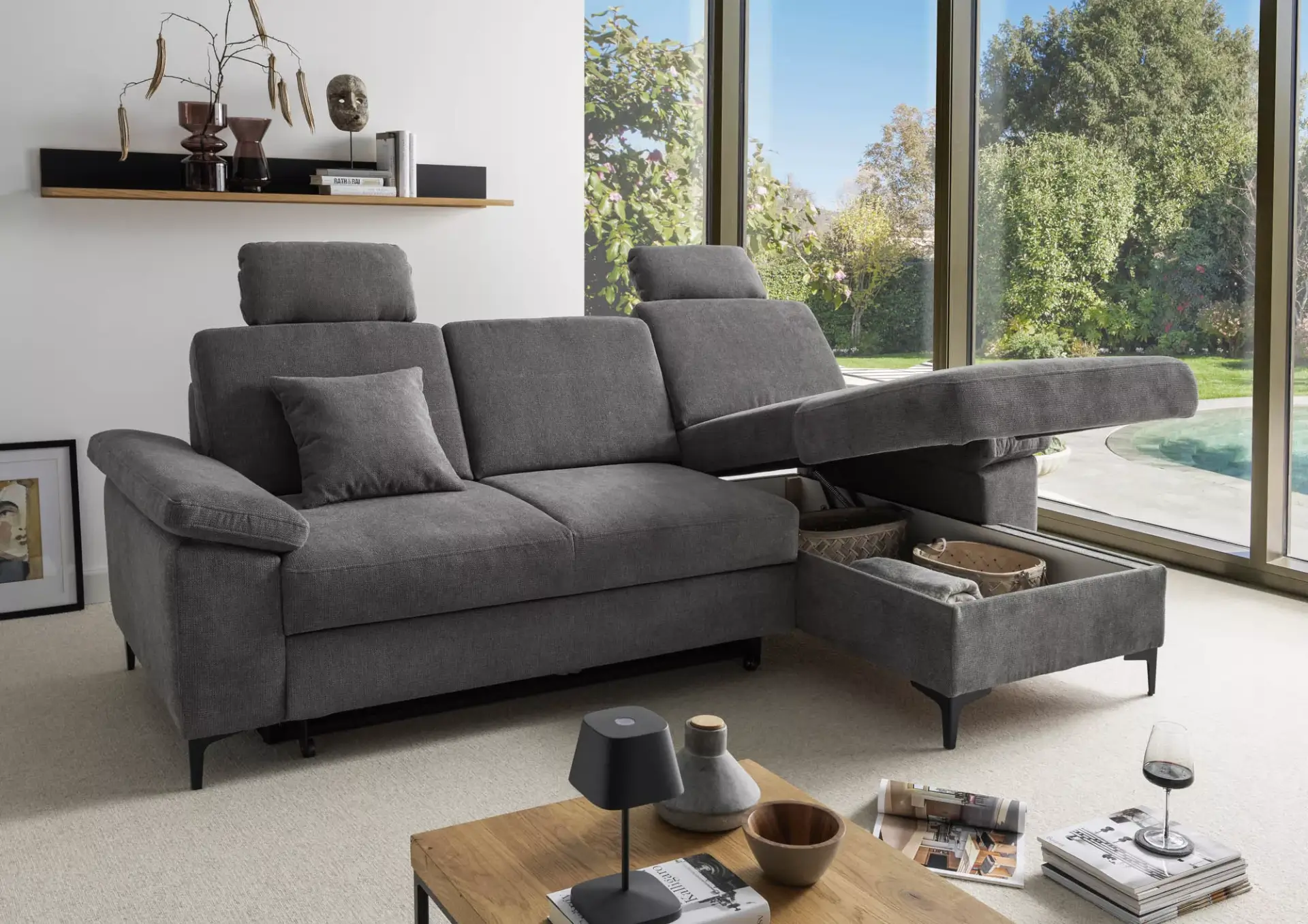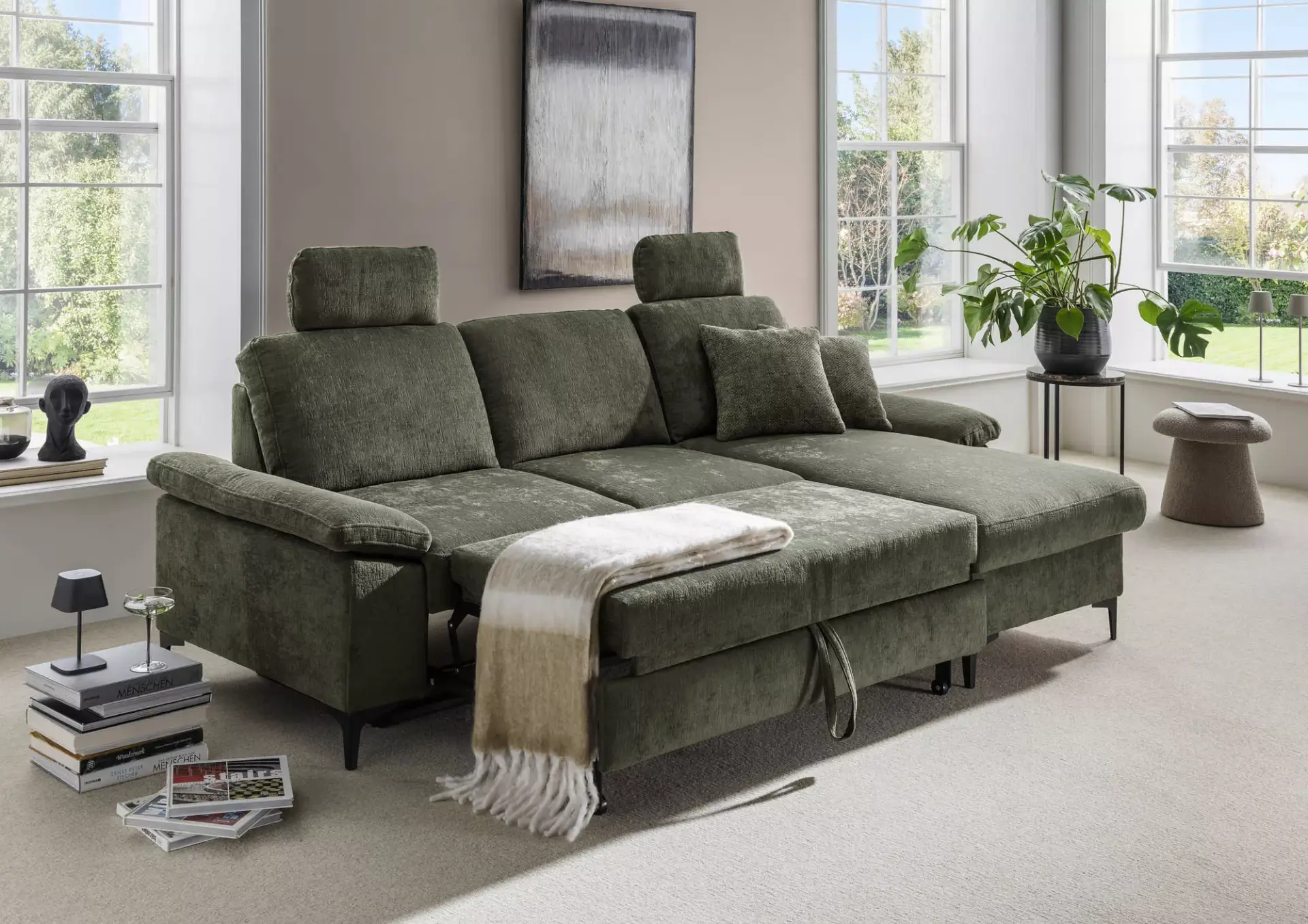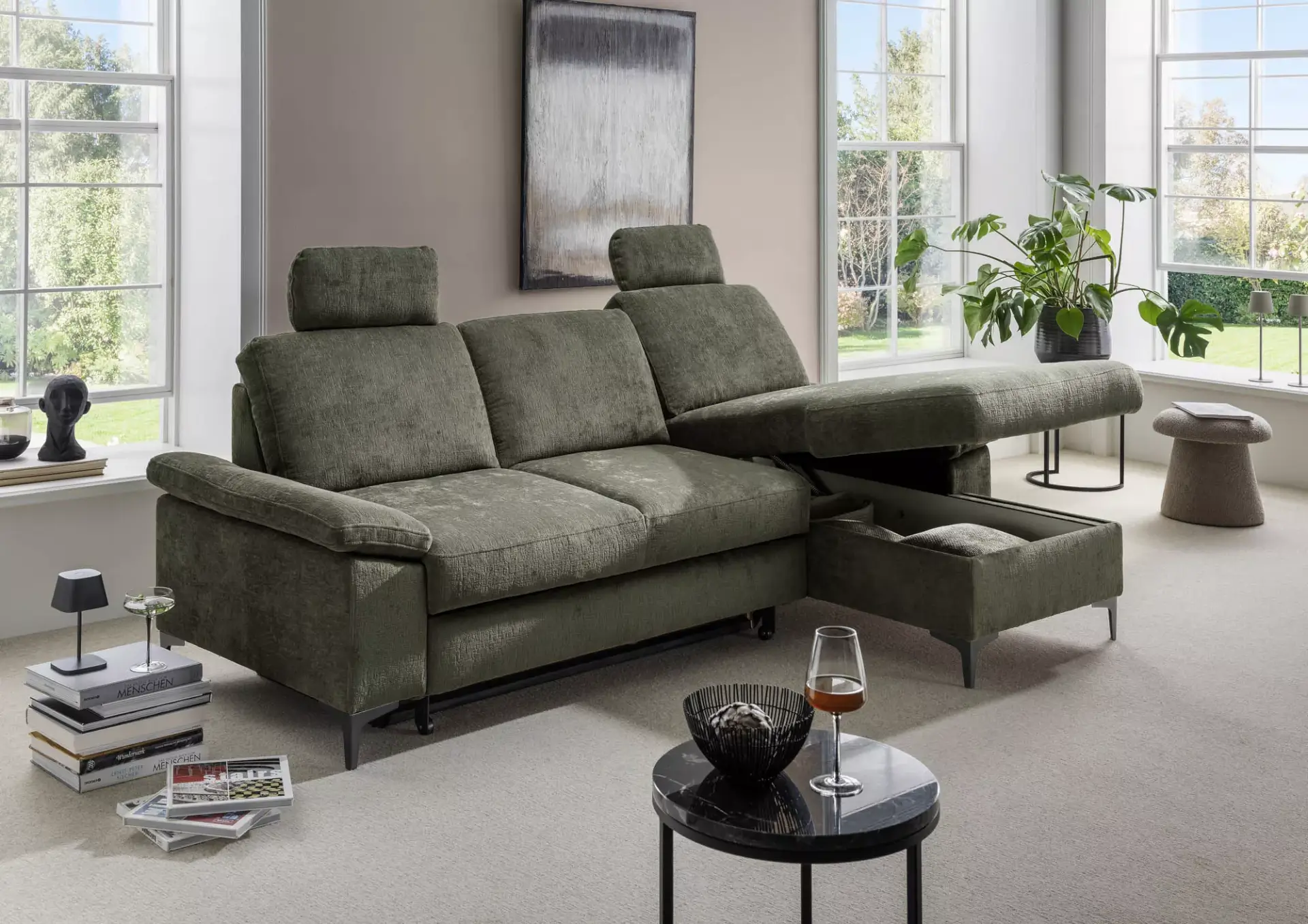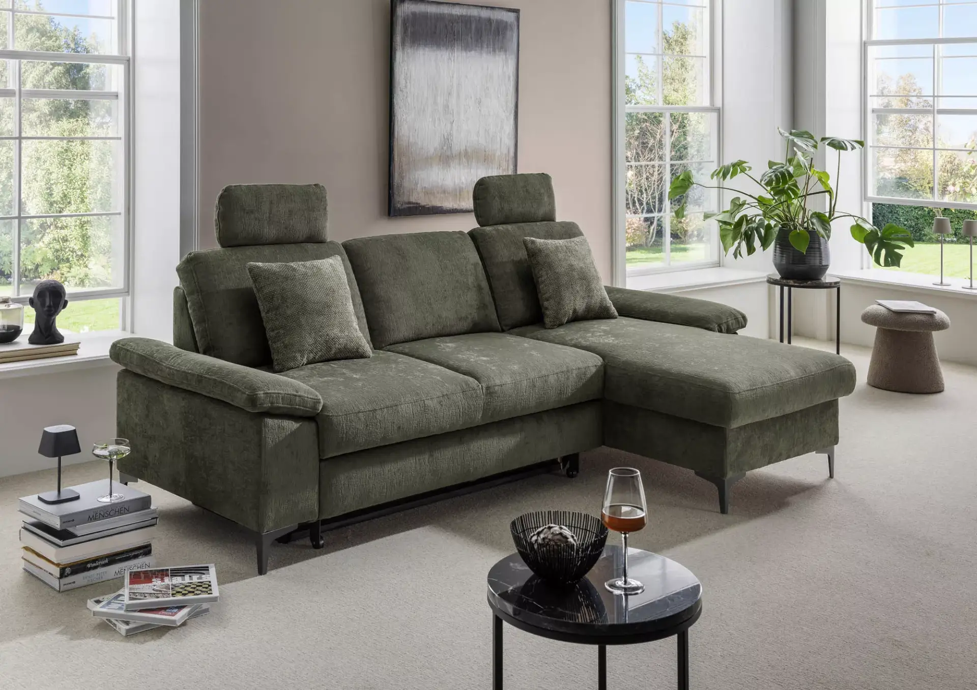 Kleine Wohnlandschaft mit 2-Sitzer + Recamiere mit Komfortschaumsitz.