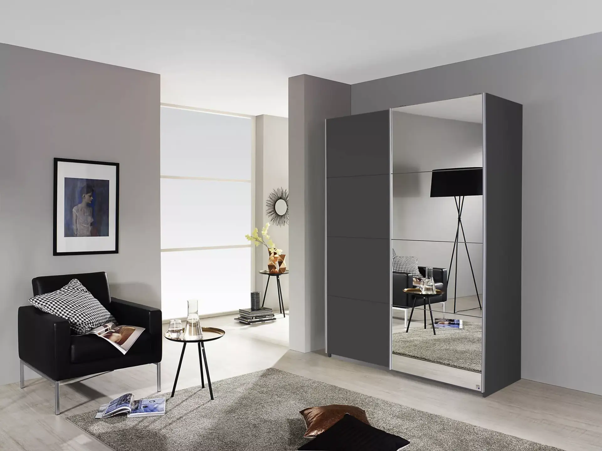 Die modernen Schwebetürenschränke der Serie Subito passen dank ihren kompakten Maßen perfekt in kleine Räume. Die Besonderheit: Die acht Türenfelder der beiden Schwebetüren lassen sich nach deinem eigenen Geschmack zusammensetzen.