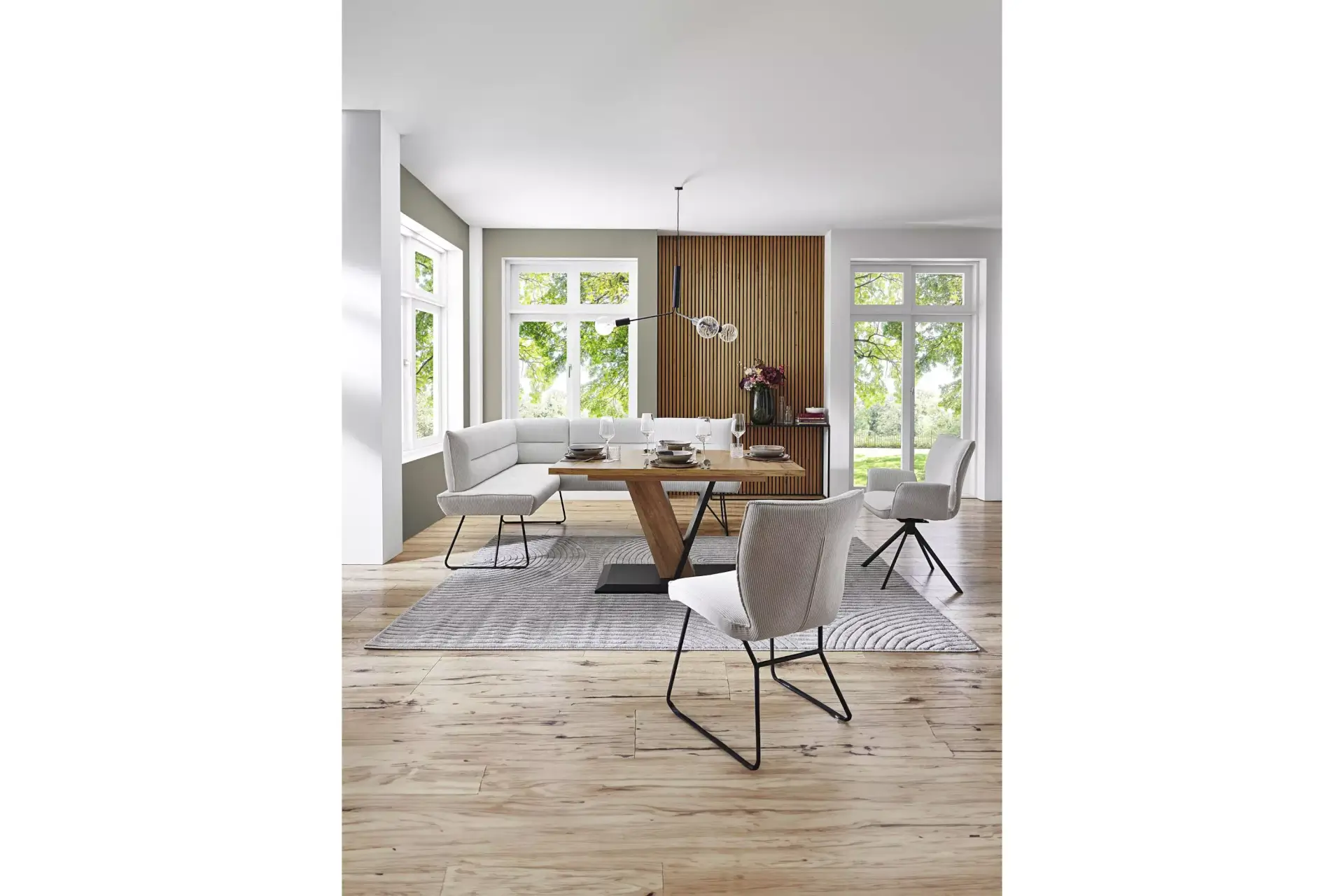 Angesagte Trend-Eckbank mit Federkernsitz und einem Gestell in Eisen schwarz. Bezugsstoff Cord " Rebell ", cream. Ebenso in Farbe shell und grey erhältlich.