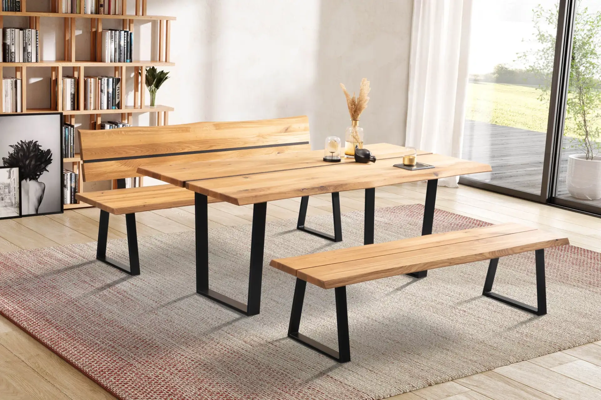 Banksystem 3-tlg. in Wildeiche geölt massiv, Echtleder Laguna schwarz, Gestell pulverbeschichtet schwarz, bestehend aus: