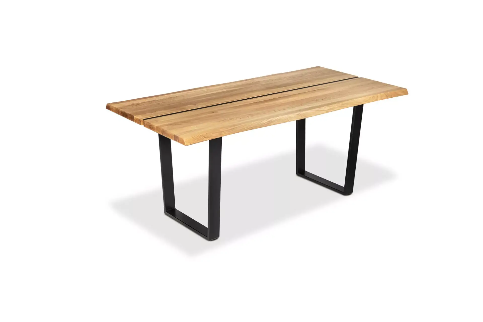 1 x Baumtisch, Platte massiv mit Waldkante und HPL Einsatz schwarz, ca. 180x90 cm,