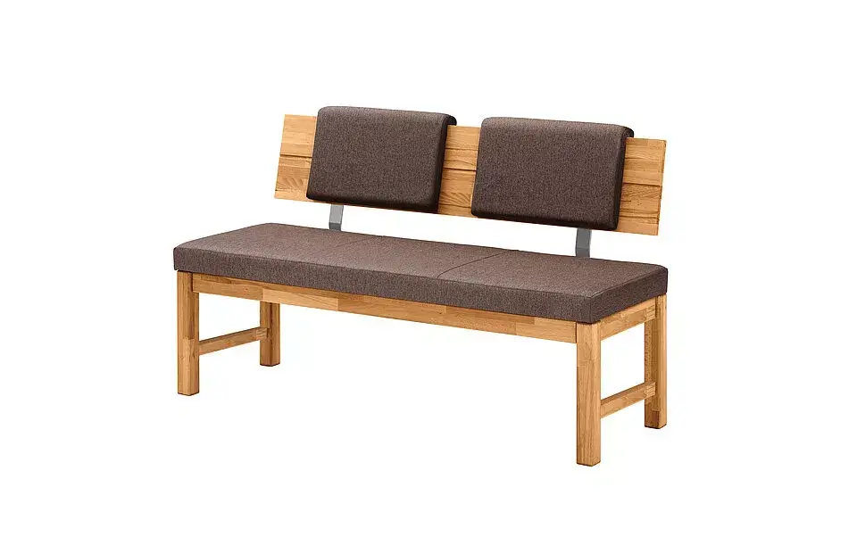 Hochwertige Esszimmergruppe in Kernbuche geölt oder Wildeiche geölt mit lieferbaren Bezügen in dunkelbraun, anthrazit, grau oder in sand. Verschiedene Bank- und Tischgrößen stehen zur Verfügung.