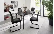 Vierfußtisch mit einem Gestell in Metall schwarz matt lackiert und einer Platte in Keramik anthrazit, BHT ca. 140 x 76 x 80 cm.