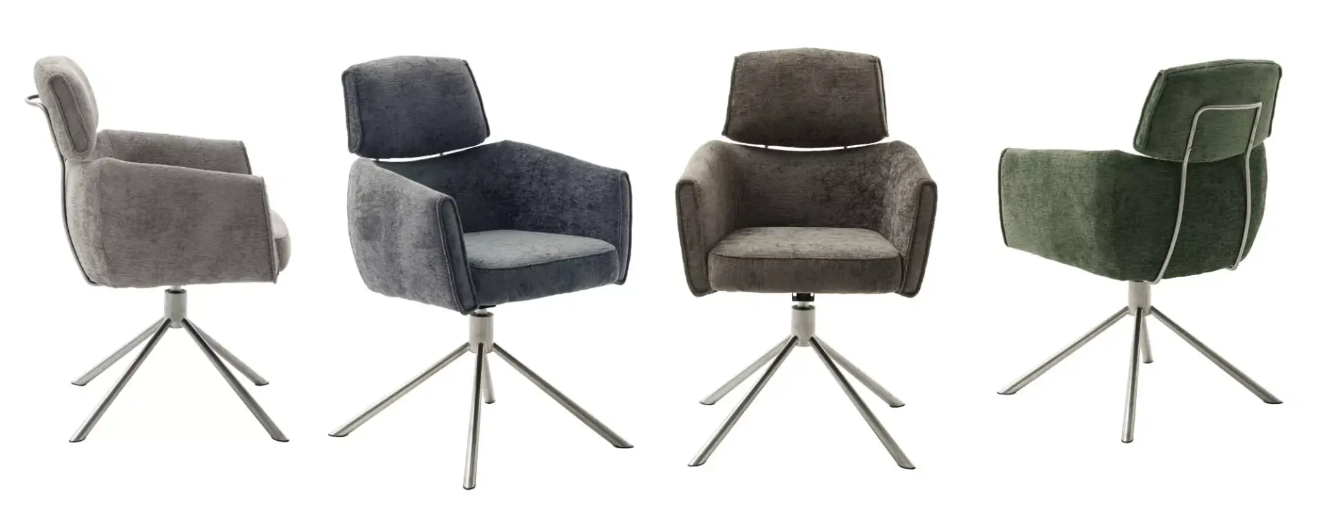 Moderner Vierfußstuhl mit strapazierfähigem Bezug in anthrazit, Gestell Metall schwarz matt lackiert, Luxus Komfortsitz mit Taschenfederkern, beweglich im Rücken, drehbar, mit Autoreturn, belastbar bis 120 kg, BHT ca. 60 x 92 x 64 cm.