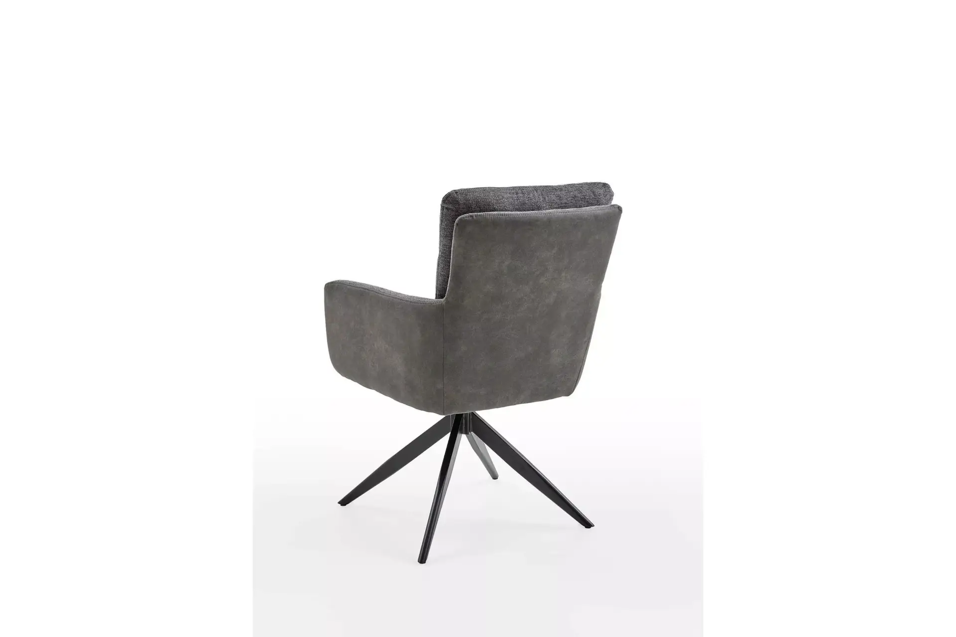 Komfort-Polsterstuhl "Tosca" mit Gestell Stativ, Eisen schwarz, 180° drehbar mit Rückholfunktion Bezug Innenseite Webstoff "Brego anthrazit". Bezug Außenseite Microfaser "Cowboy grey" mit Micro-Federkern im Sitz.