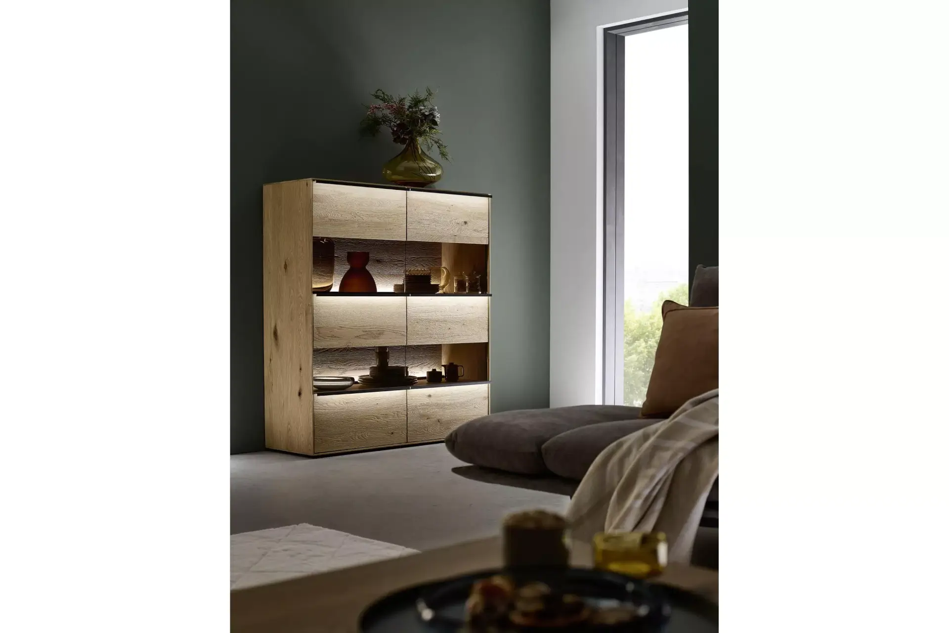 Klassisch, modern und natürlich. Wer ANEA zum ersten Mal in Ihren vier Wänden sieht, wird sofort von der Geradlinigkeit des Programms begeistert sein. In hektischen und stressigen Zeiten werden Sie den reduzierten Look, der ohne Akzente auskommt, besonders zu schätzen wissen. Die indirekte Griffbeleuchtung setzt die sandgestrahlten Fronten aus natürlicher Kerneiche optimal in Szene.