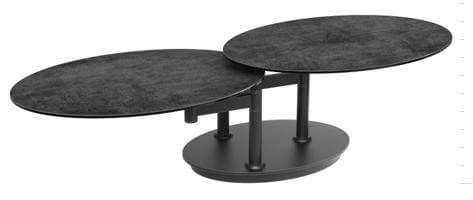 Couchtisch mit zwei Tischplatten in Keramik , mit einem Gestell in Stahl schwarz lackiert. Auch in anderen Ausführungen erhältlich.