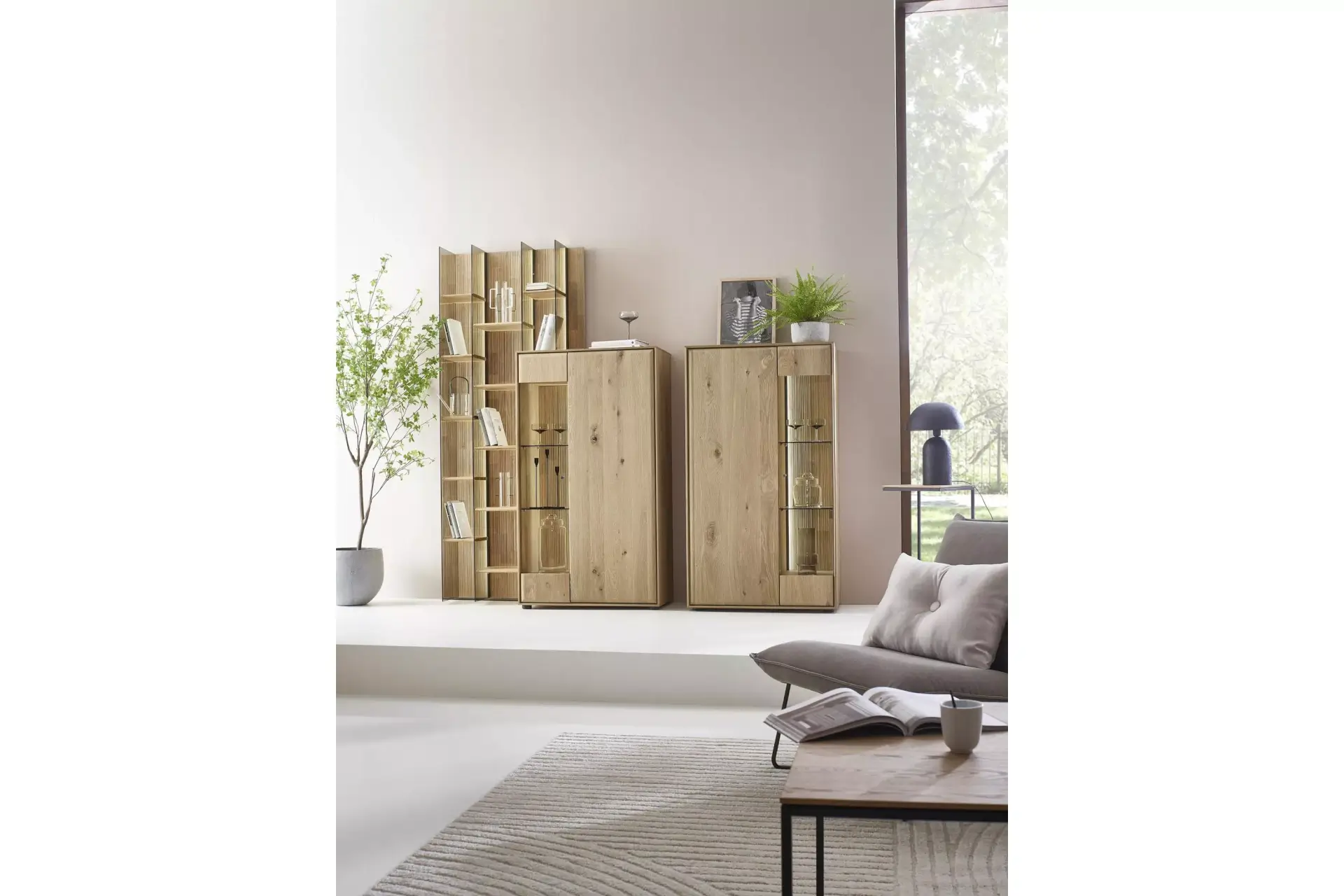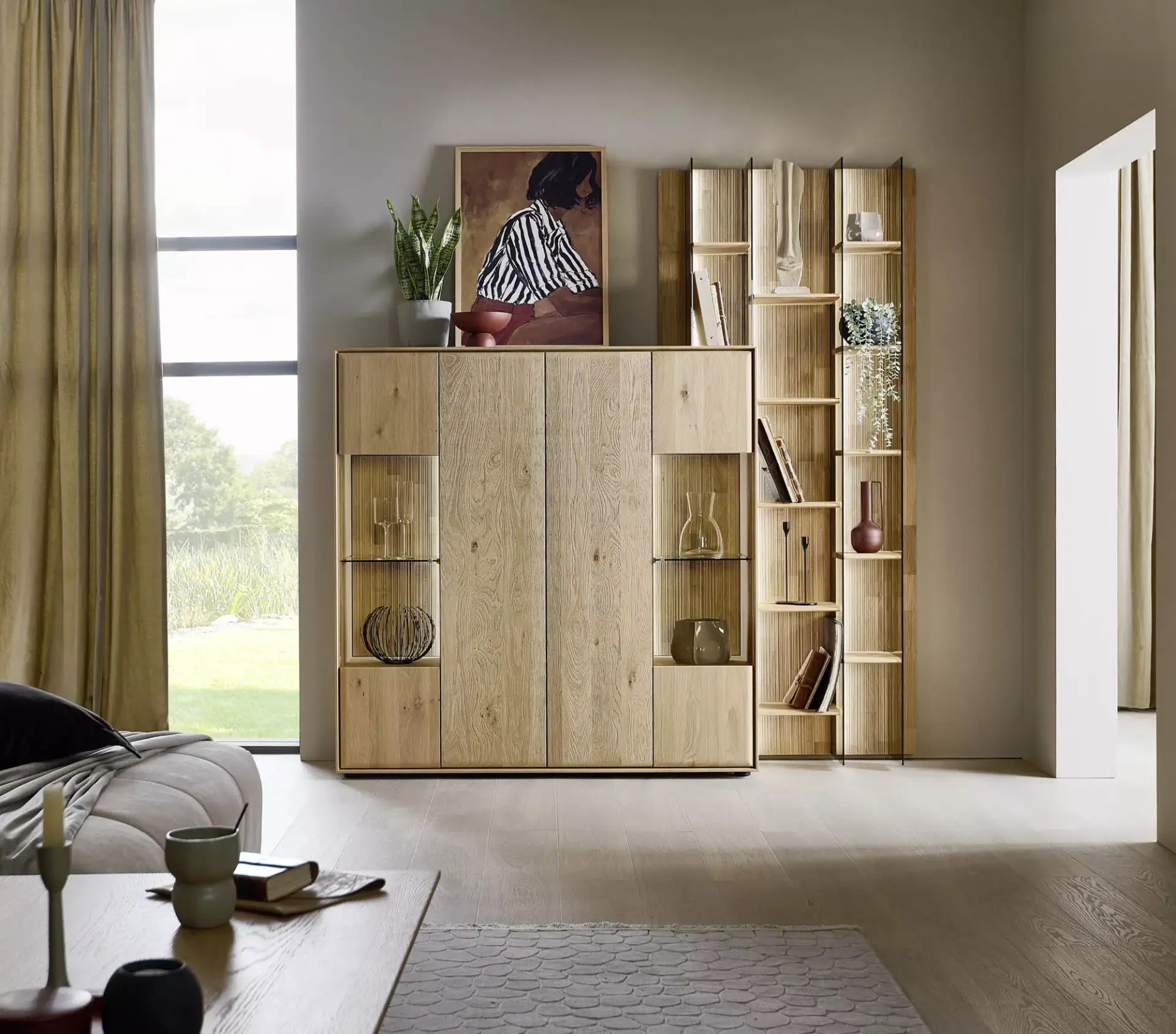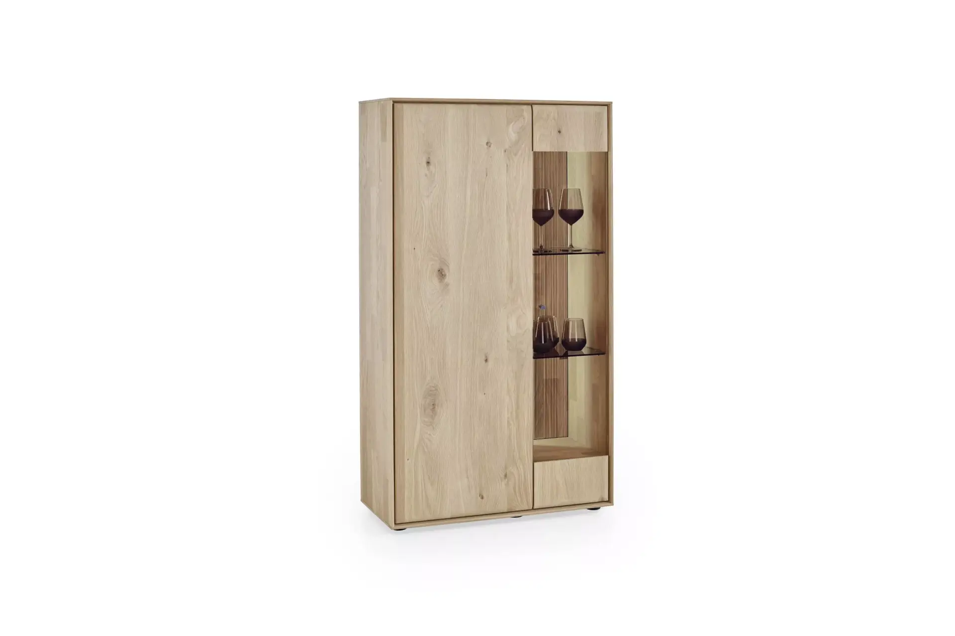 Passgenaue Möbel für Ihr Zuhause. Entdecken Sie dieses umfangreiche Programm in Kerneiche Natur massiv gebürstet mit geschroppter Rückwand. Erweiterbar auf ein komplettes Esszimmerprogramm.